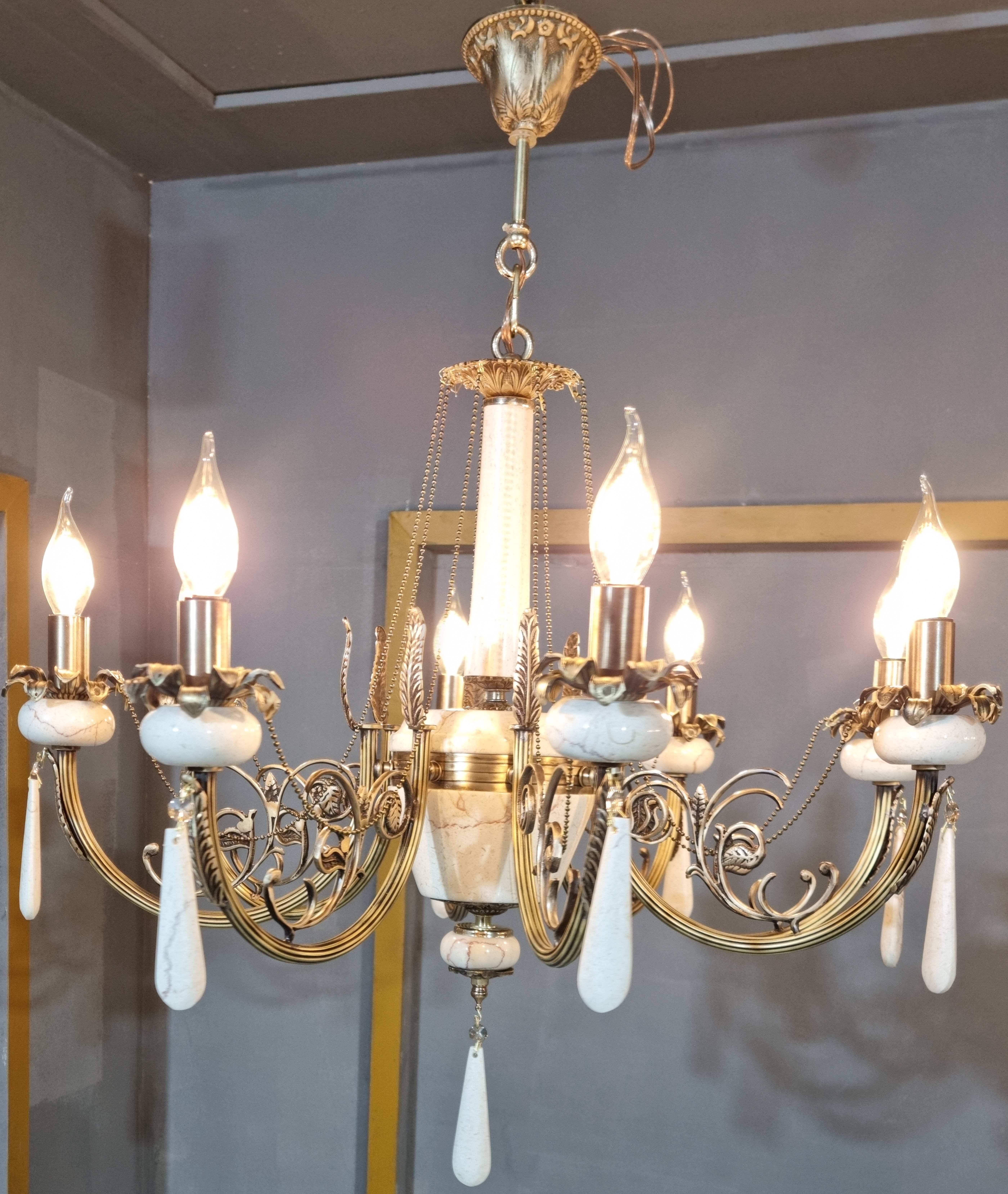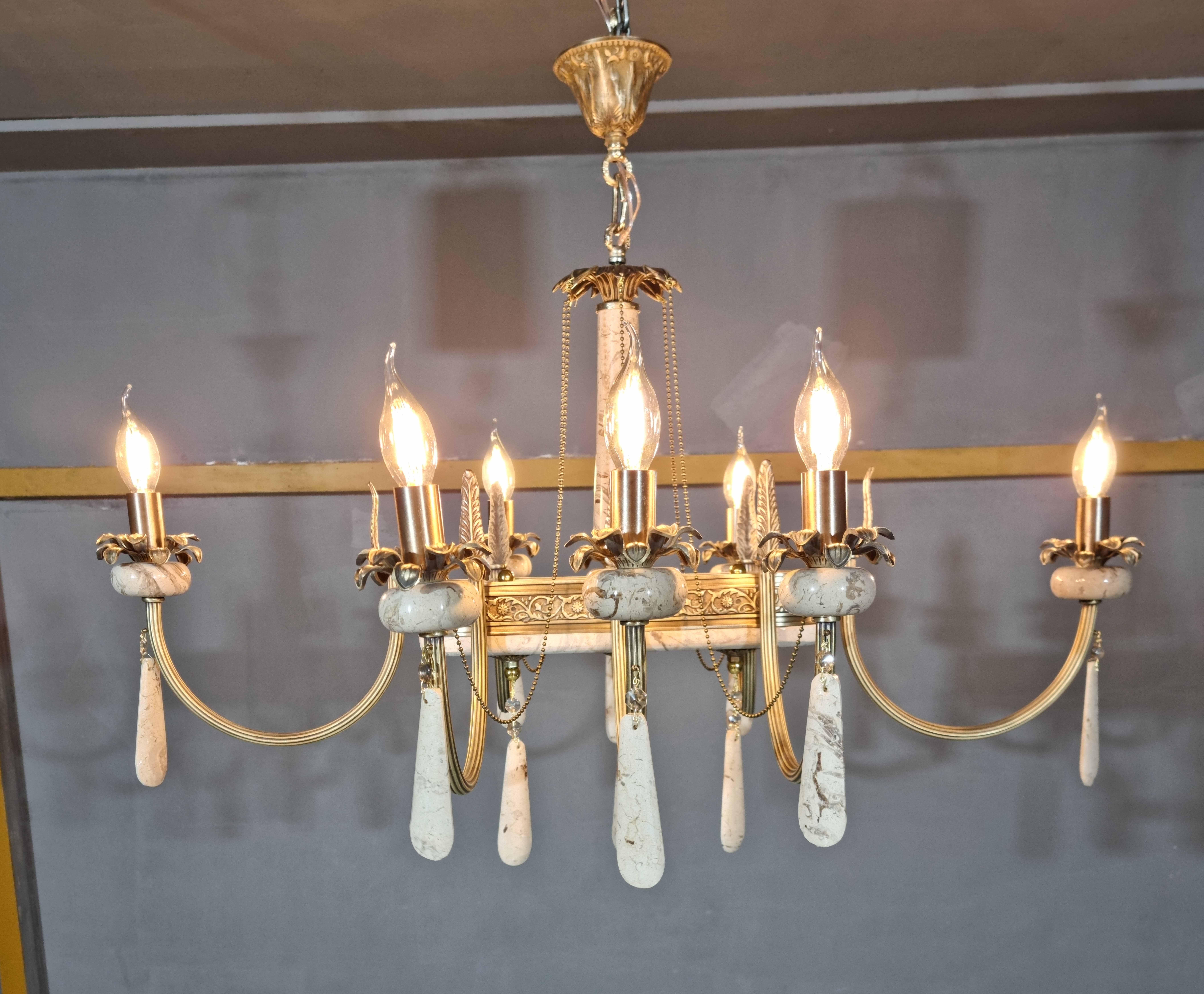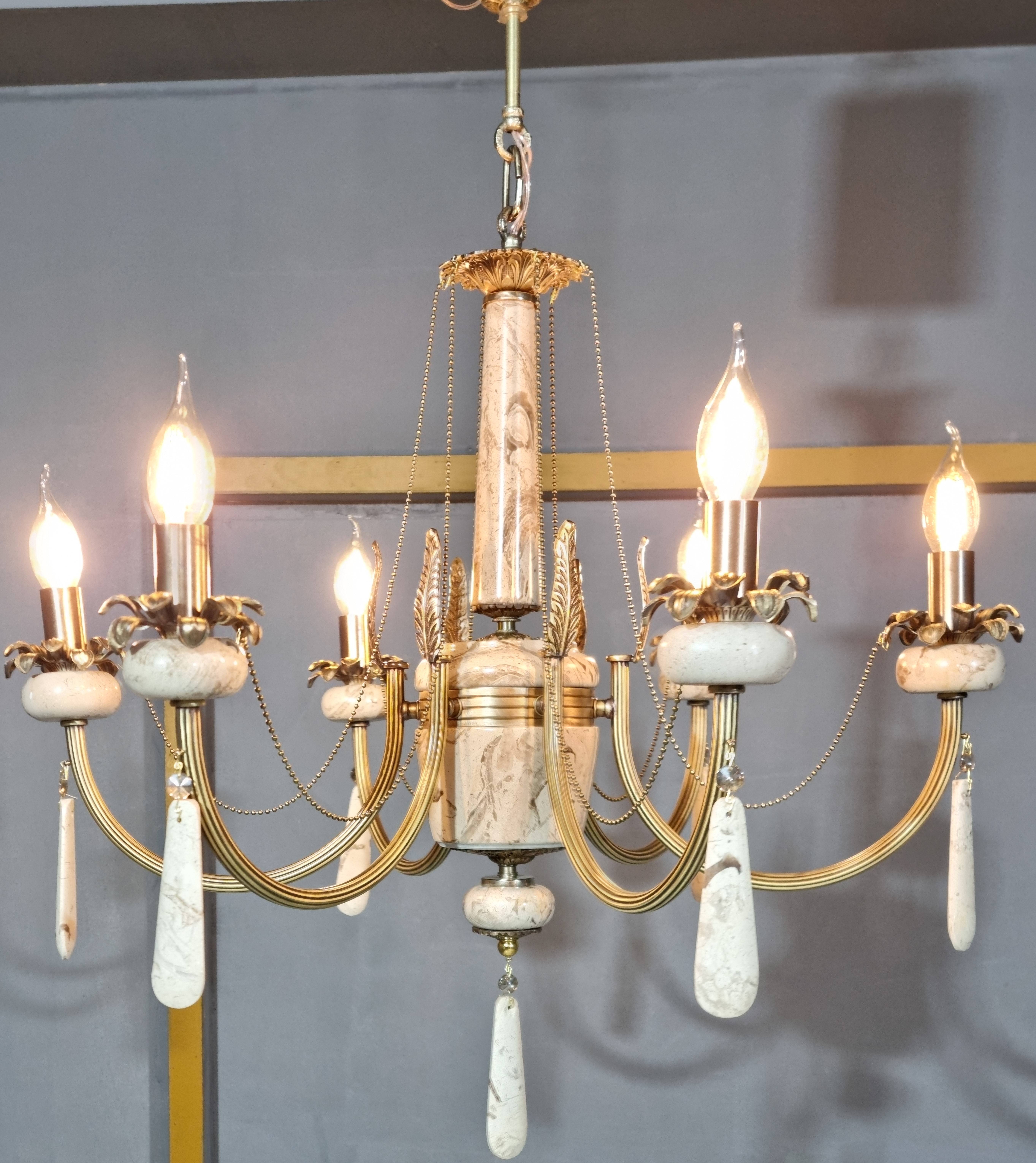 لوستر6شاخه برنزی و سنگ مدل ویشکا
