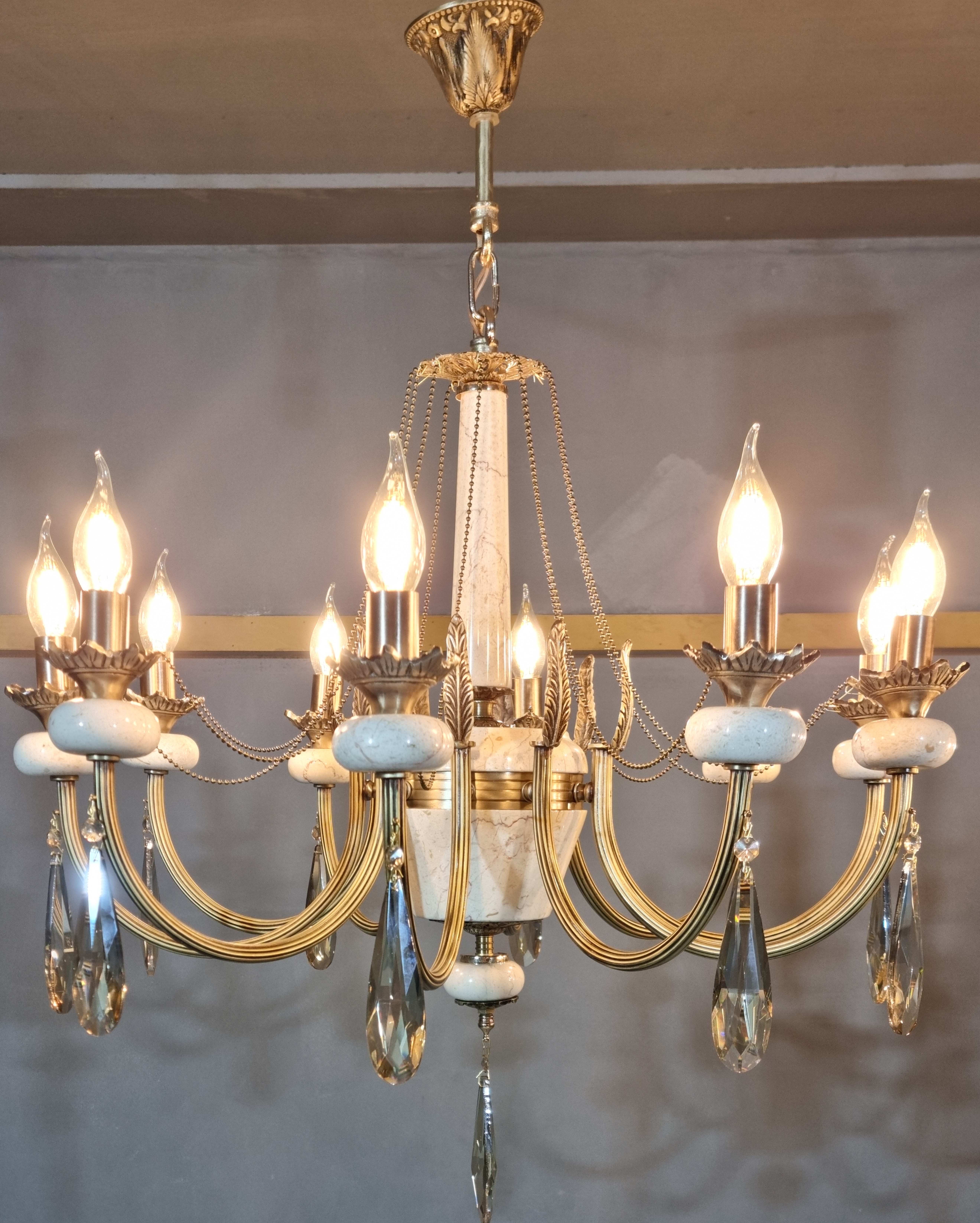 لوستر8شاخه برنز و سنگ مدل اسپادنا کبریتی