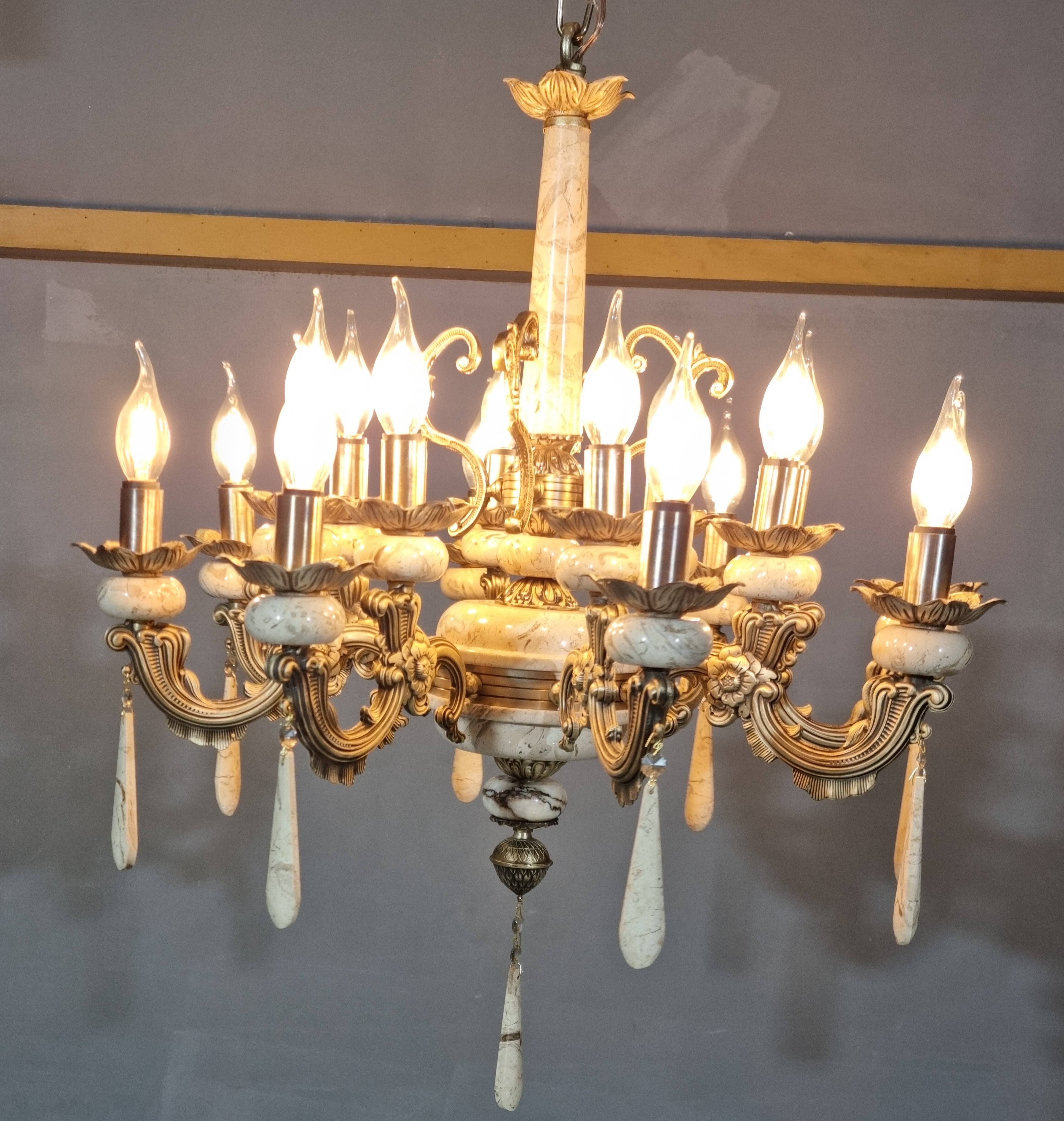 لوستر برنز و سنگ ۱۲ شاخه مدل اسپادانا با زیردستگاه برنزی