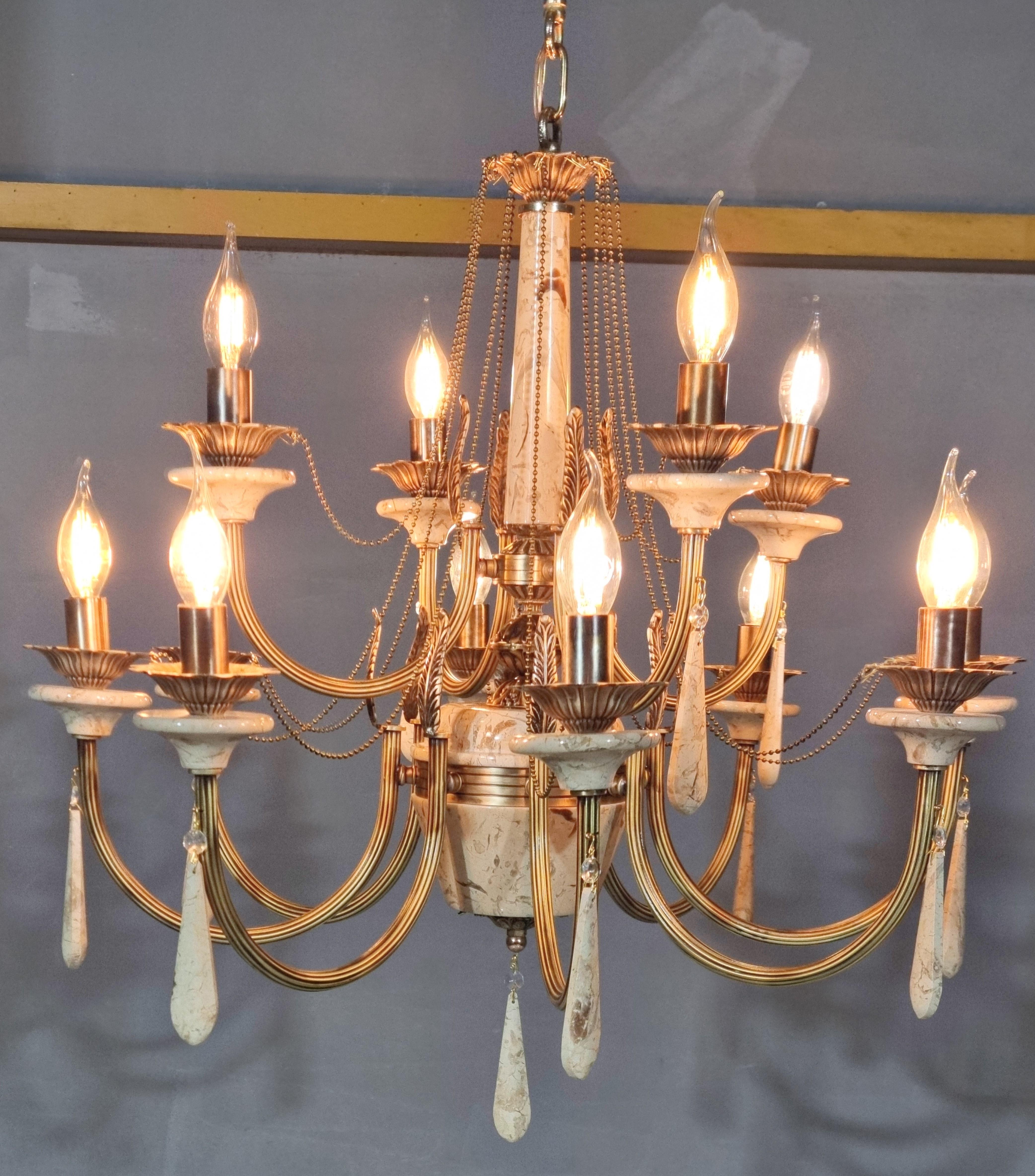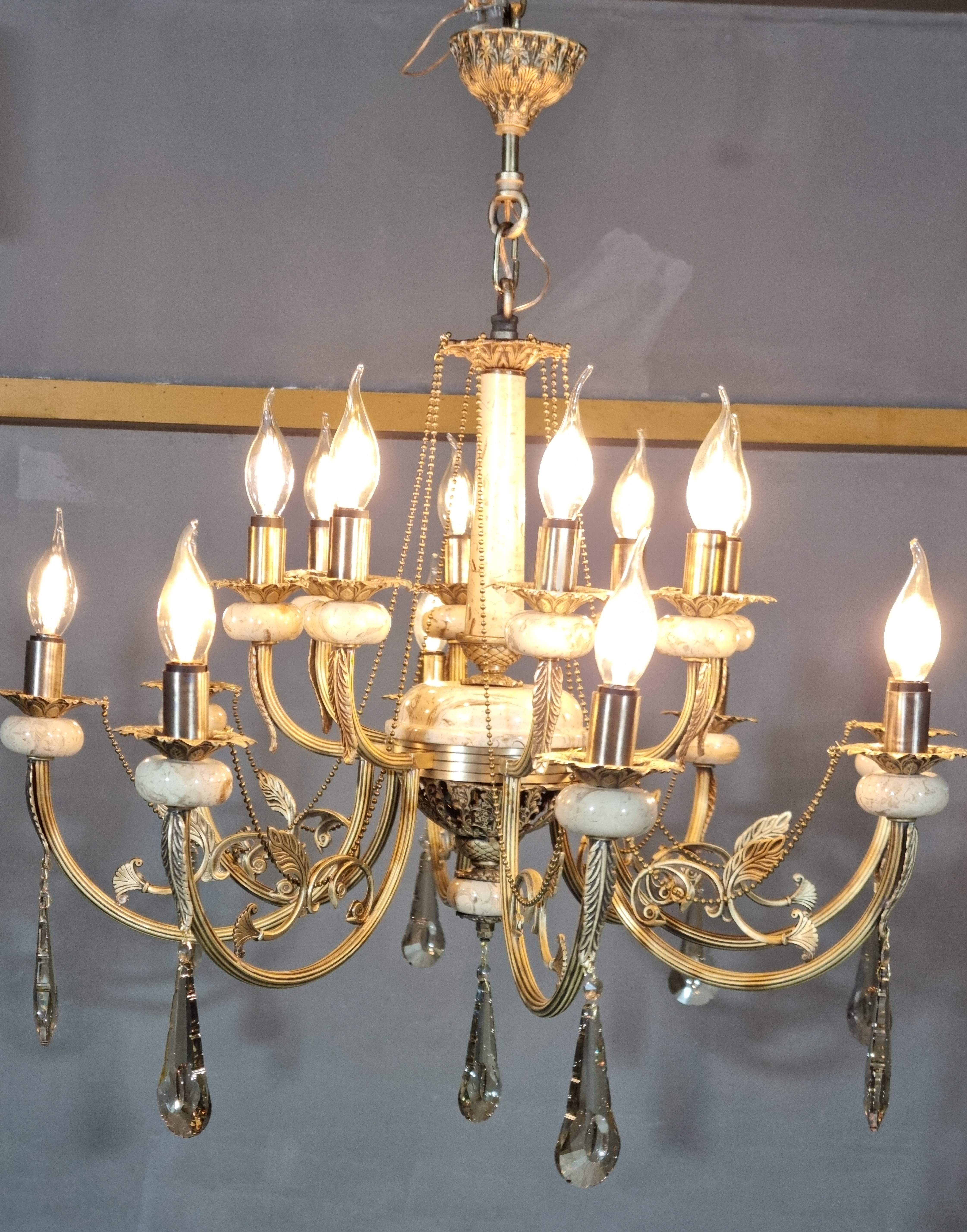 لوستر۱۰شاخه مدل ویشکا ترکیب برنز و سنگ